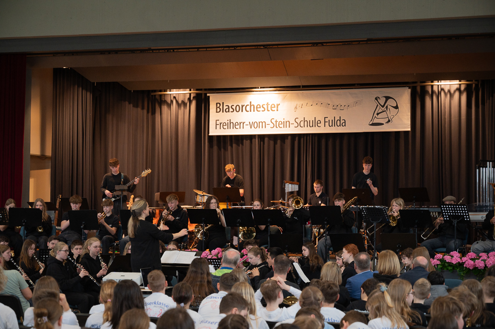 Am Dienstag, 17.03.26, versammelten sich rund 300 junge Musikerinnen und Musiker aus der Region um das 25jährige Jubiläum der Bläserklassen an der Freiherr-vom-Stein-Schule zu feierten.