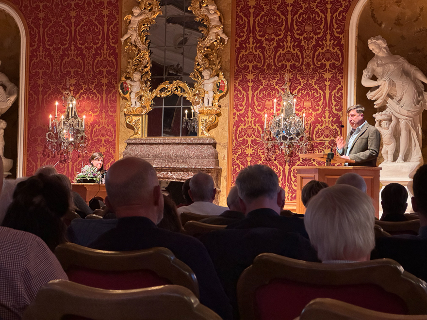 Was machen Schülerinnen und Schüler an einem Mittwochabend um 19 Uhr? Gängige Vorurteile wären sinnloses Scrolling durch Tiktok oder Hausaufgaben mit der KI faken. Wir, neun Schülerinnen und Schüler der Klasse 11c, hatten jedoch andere Pläne. Gemeinsam mit unserem Klassen- und Deutschlehrer haben wir eine Lesung im Stadtschloss im Rahmend der Reihe „Literatur im Stadtschloss“ besucht.