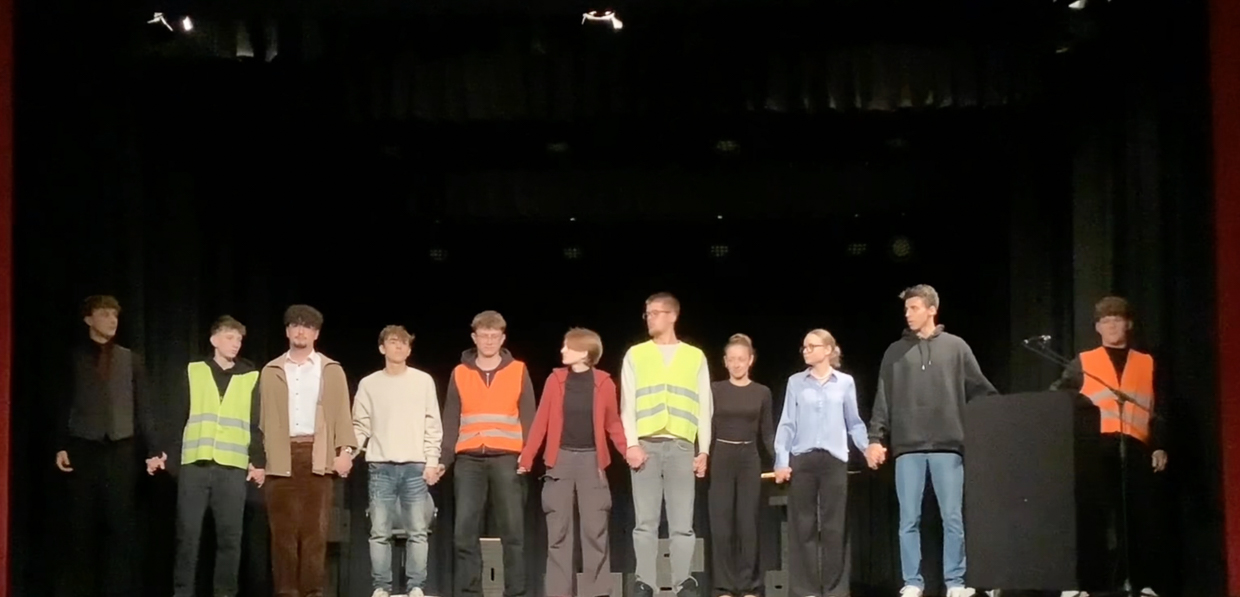 Der abschließende Applaus zeigte, dass sich die intensive Arbeit gelohnt hat. Die Teilnahme an den Schultheatertagen stellt für unseren DSP-Kurs eine wertvolle und prägende Erfahrung dar, die nicht nur lange in Erinnerung bleiben, sondern uns auch bei der Arbeit an einer Adaption von Büchners „Woyzeck“ inspirieren wird.